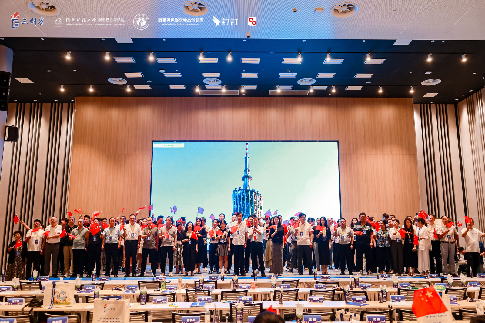 会议在全体合唱《我和我的祖国》达到高潮后圆满落幕,随后领导和嘉宾为“三创赛赛友会”和“三创好物”揭牌,并参观了三创(杭州)网络科技服务有限公司。