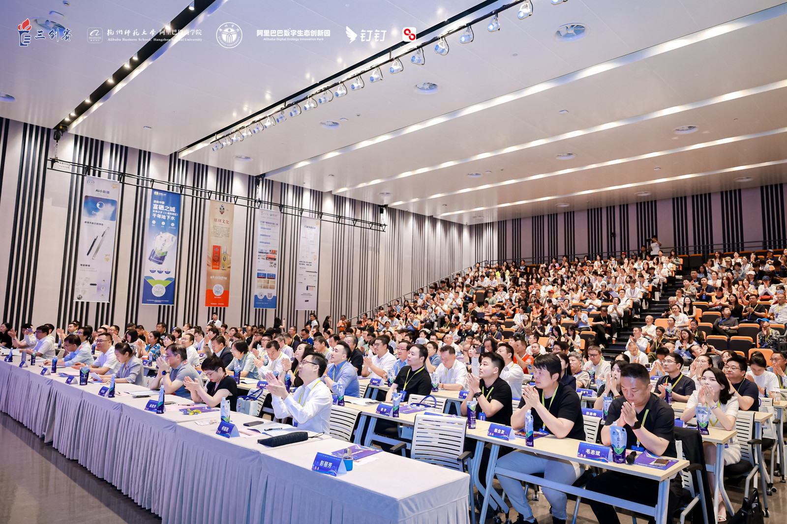 杭州未来科技城(海创园)党工委书记、管委会主任郭云伟先生,中国(浙江)自由贸易试验区杭州片区管理委员会专职副主任武长虹女士,钉钉副总裁马力骏先生,阿里巴巴不动产管理部总经理姚君芳女士,三创赛竞组委副主席、杭州师范大学阿里巴巴商学院执行院长章剑林教授等嘉宾分别致辞。他们高度赞誉三创赛在推动电商教育革新与激发大学生创新潜能方面取得的卓越成效,并代表各方庄严承诺,将汇聚优质资源为大赛提供全方位、多层次的坚实保障:政府层面将倾力提供政策指导与产业对接,阿里巴巴及钉钉将开放顶尖的技术平台与商业实战资源,学界则将深化产教融合以培育沃土。各方勠力同心,旨在共同构筑一个支撑大学生施展才华、实现梦想的广阔舞台。